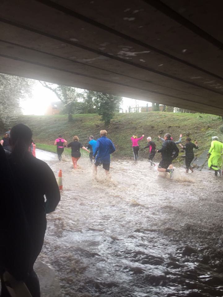 Overall it was a lovely route. Mostly flat, and it stayed away from roads, taking us through lots of beautiful areas, on paths. Underfoot it was mostly flat, with a few slight hazards, but nothing to worry about. To avoid the roads it meant we went under loads of underpasses, and I mean over 20. This is fine for runners, but was a little awkward for me with the flag. I started by taking it out, but after the tenth time I just pulled it aside and ran at an angle. One of the first underpasses was flooded, and I mean up to the knees flooded, with no way around. So after only 1.7 miles we got very wet feet. Luckily this was the only flooded section.