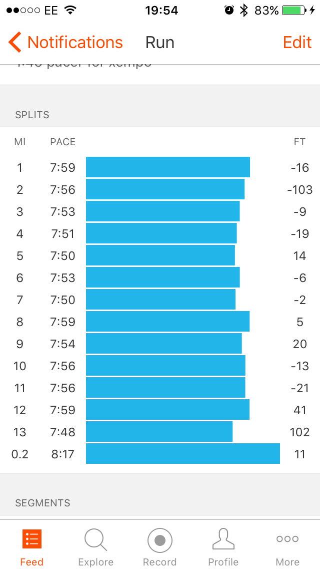Target time 1:45, actual time 1:44:38. I like running with Xempo for the motivation to get my next colour top, check out what colour you are eligible for at: