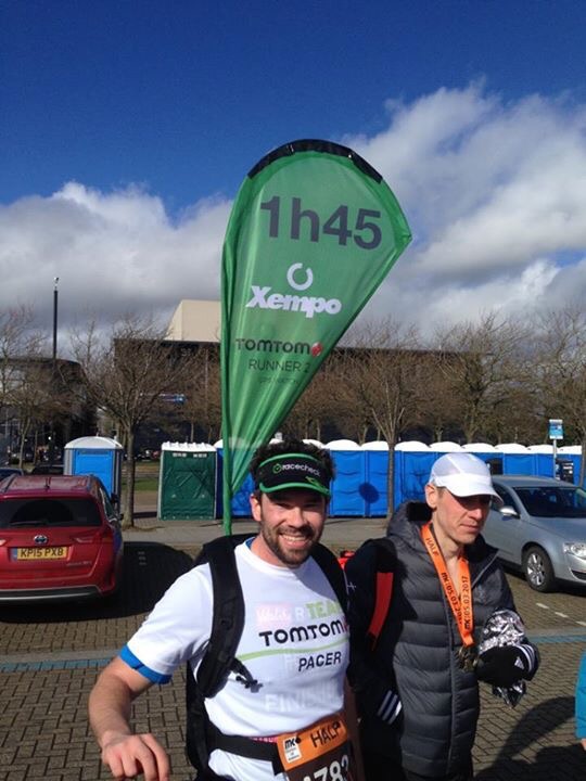 I was a little disappointed with the race village. I’d go as far as say there was no race village. If there was I missed it. Next to the Xempo meet point there was a registration tent which looked miserable because of the weather. What surprised me is the Xscape centre was right there, but we were in the car park. I feel like the organisers missed a trick here as most participants went into Xscape and they could have set up a really good village inside. I went inside for a coffee with fellow pacer Ian Cox, as we had arrived early, but with nothing to do we weren’t going to just stand in the cold. Usually I would hang around so people can meet the pacers, but the organisation did not lend itself to this.