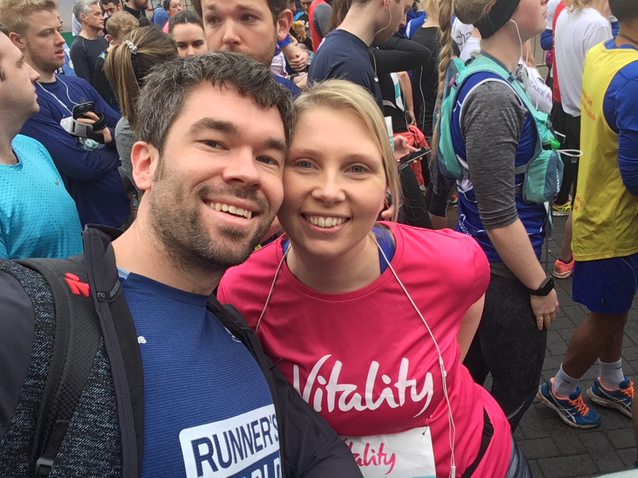 This year was a little more stressful for me getting to the start, and the first year I have not had my family with me. I had been offered a place at North London Half Marathon, which I really wanted to do, but unfortunately it clashed. Kirsty decided to take this place, which is great for her first half in years. We stayed at her parents so they could look after the children and she set off early for her 08:30 Wembley start. I left a bit later and had to travel to a convenient pick up point to get a lift from another pacer (my wife and family normally take me). I decided to take a detour as I had time and arrived at the start line in time to see Kirsty start her race, which I am really pleased about.