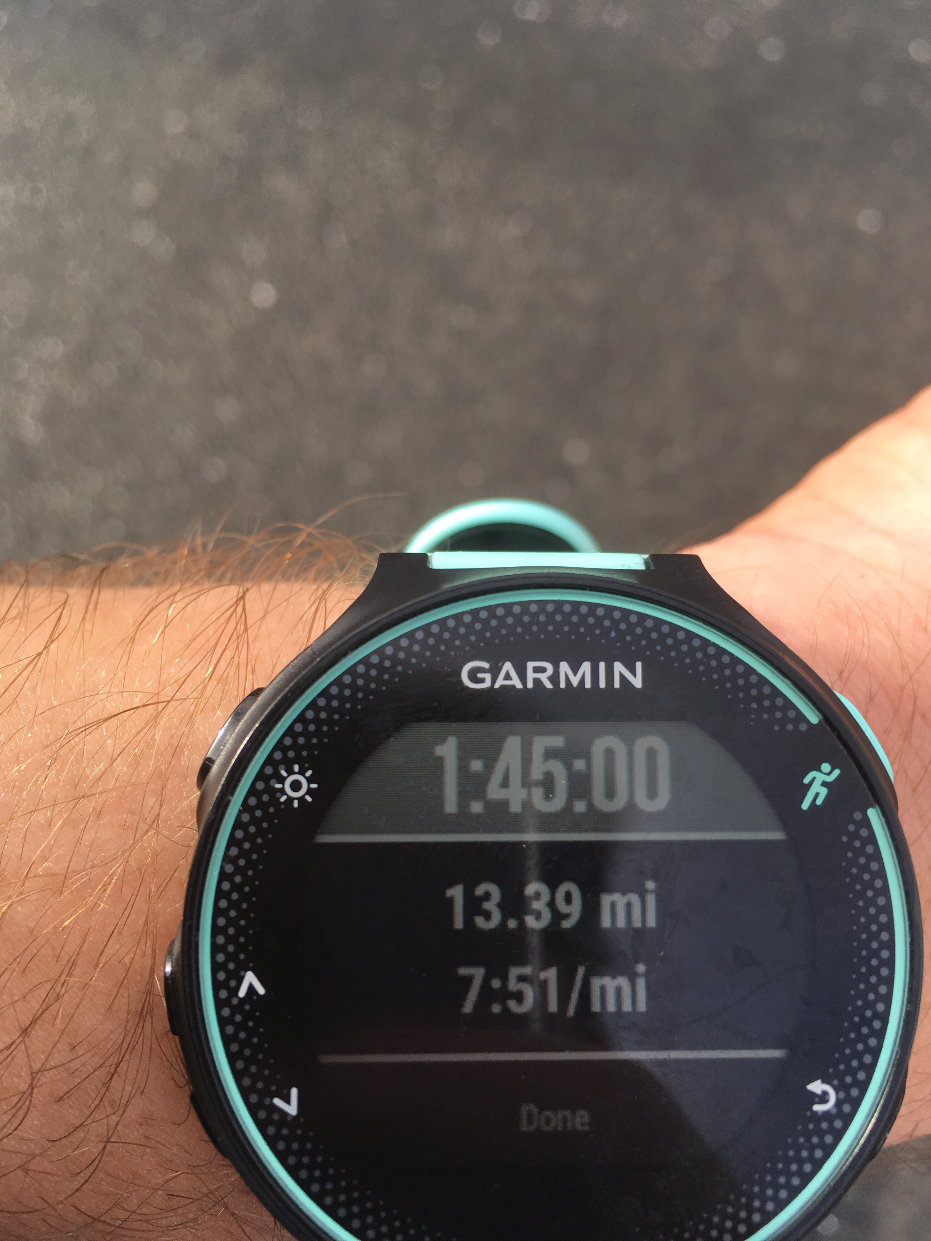 It is more difficult having to account for mile markers being out and I prefer getting even splits. According to my watch I finished in exactly 1:45, which should be 8 minute miles, but mine shows as 7:51 which accounts for the extra distance. I also have faster splits, but again this is necessary to come under otherwise we would not have made the required time.