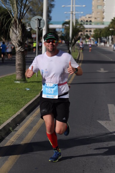 The course itself started at the marina which is a beautiful setting. We headed to the old port and completed 10k by the time we were back at the marina. This area was populated by lots of spectators, and a pleasure to run through. The rest of the course was predominantly one straight, flat road that we go out and back. It was beautiful and scenic with the ocean on our side, and water stations every 2.5k (in bottles). This course did suffer from a lack of spectators though, but the marshals did make up for it.