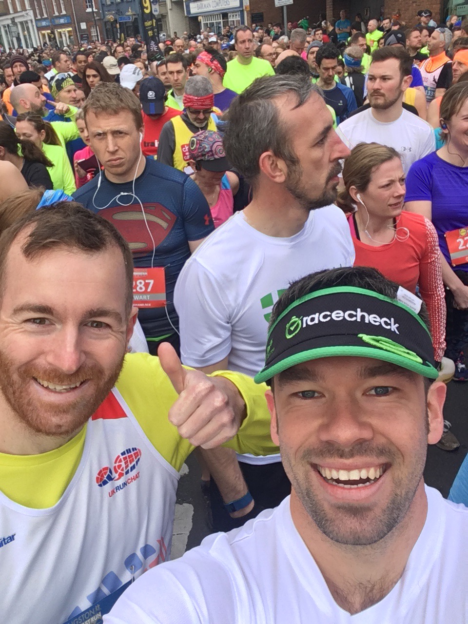 We made our way to the starting area early as pacers were required to go to a 07:15 briefing. I’m not entirely sure why we had to do this as it lasted less than 5 minutes, so we were just hanging around. I went for a coffee and cake with my family and Phil (fellow pacer).