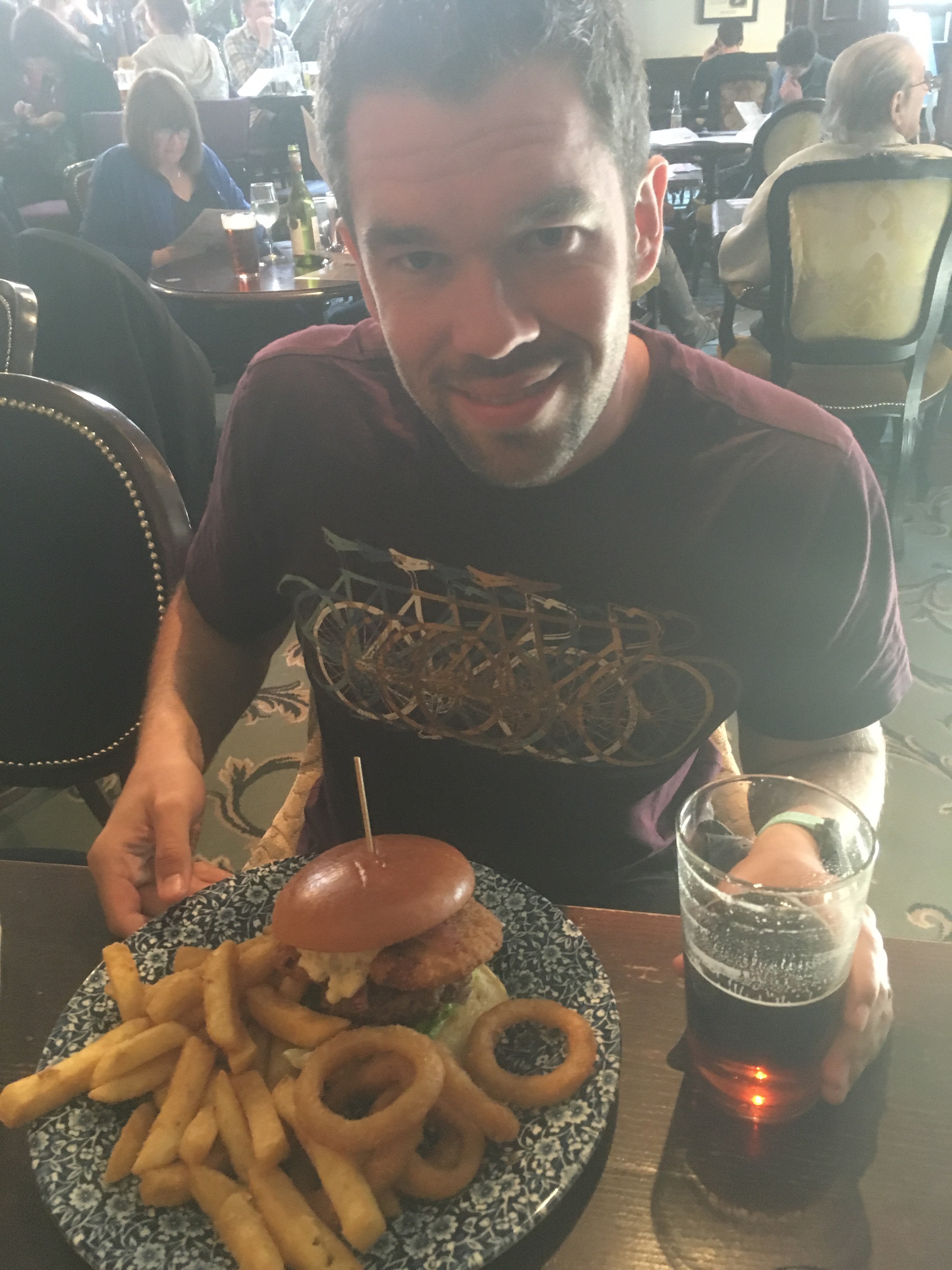 After a somewhat disappointing expo, which I spent most of the day at meeting people, I made my way for a traditional beer and burger. I know it’s not the best race preparation, but it works for me.