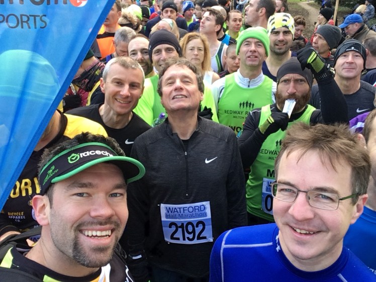 It was bloody cold, but it was great catching up with lots of familiar faces, both pacers and runners alike. As always I took a few selfies before we started. I knew that it would be a challenging course so I wouldn’t be taking my phone out for pictures on route. Dan from Xempo selected a group of regular pacers for Watford Half Marathon, so I knew most of them.