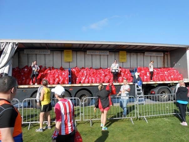 If you haven’t done this before then don’t worry it’s pretty simple. You will usually put your bag in to correspond with your race number. Many events will give you a bag to use, and if they do you must use this bag and attach your number to the bag. Others give you a label to attach to your own bag. Just give your bag to the baggage truck or tent and then collect it when you return.