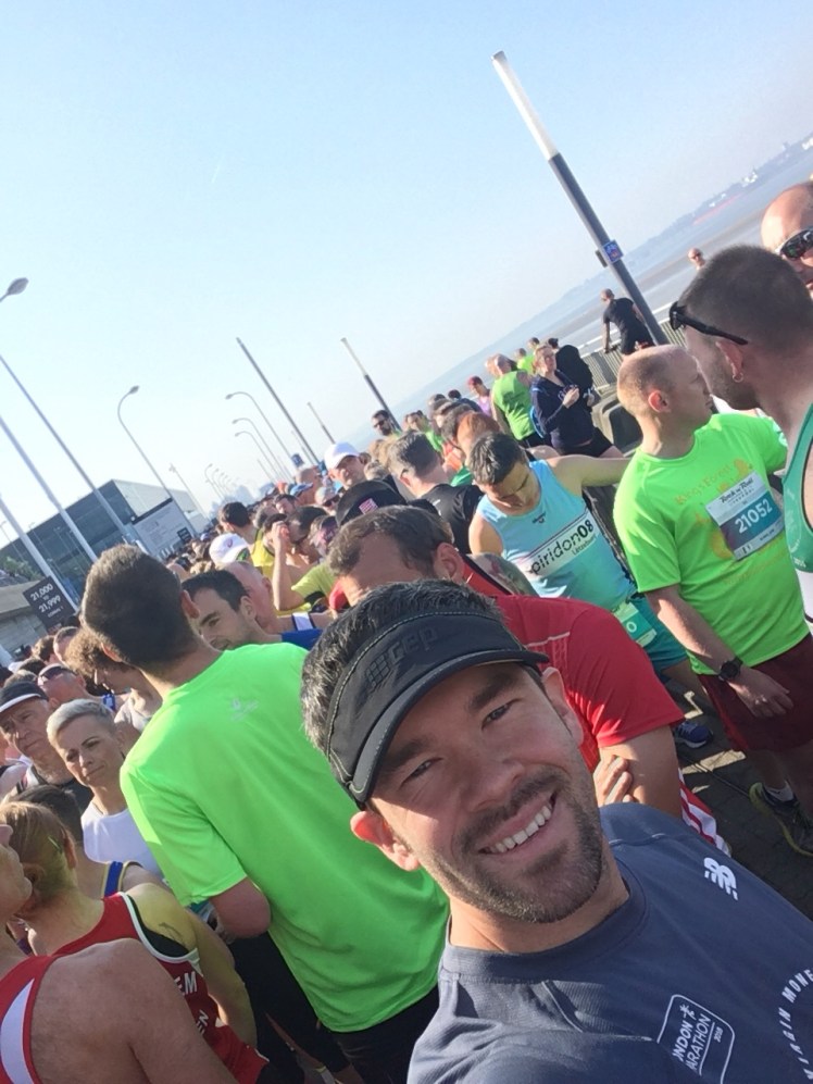 Today I paced with Jason, who was fantastic. We had a large group of runners with us from the start. There were lots aiming for sub4 for the first time, and lots of people running Liverpool for the first time. It started off hot, so we knew it would be a hot and hard day. With the later start of 10 for the marathon it gave it time to heat up more. It was also a delayed start. I like that the slight delay between waves prevents congestion, but it seems like a delayed start is a regular occurrence.