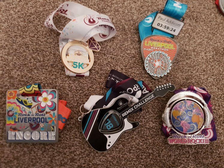 Blingtastic… I love the Rock n Roll series, and enjoyed pacing the sub 4 #funbus. I organised a great group of pacers, and took part in both the 5k and marathon. A lovely run, finishing with a great afterparty. Lots of smiles as we finished in 3:59:24. I also got a medal for running 2 events, one for running consecutive years and finally one through the post for running in two continents.