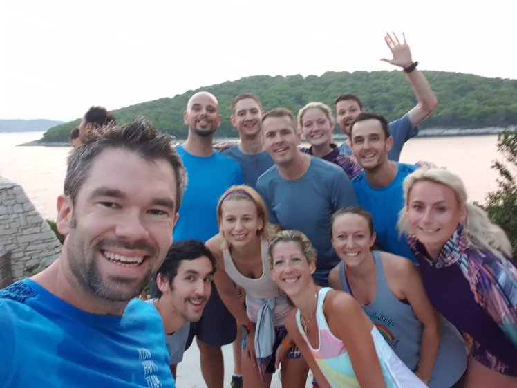 The UK Run Happy team led from the front and spent an awful lot of time in the water. After watching the sunrise during a run, this was the best way to watch it set.