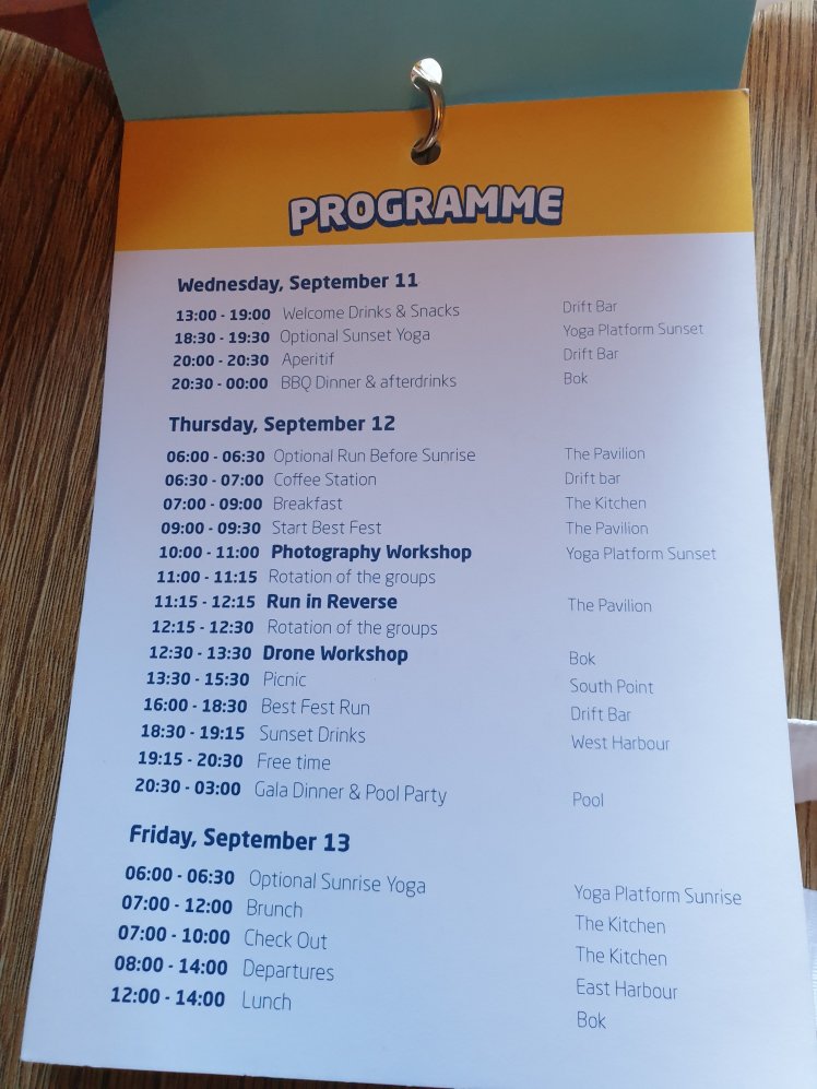 We had a lovely BBQ to relax and settle on the Island, where we got to catch up with old friends. But the start of the challenges began with a card. 2 sets of cards were given out, and we had to find our pair, as this would be our partner for the Best Fest Run, to Run with New Friends.