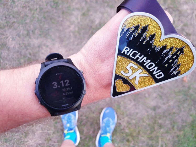 All a good laugh, and I think the finish photo will show that I took the gun. However, the race chip results has me one second behind in a respectable 20:27.