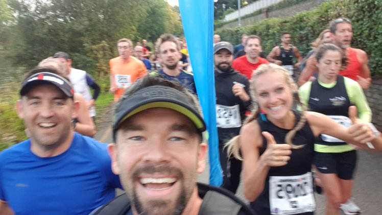 When we got started it was very busy, and I kept my group back. There is no need to worry or try racing around people at the start. Instead I just eased us into the right pace, and after a few hundred metres we were at target pace. The first few miles is in and around the town centre, so it is very technical. We started off as a big group, but gradually Jake pulled off ahead slightly which enabled us to spread out our group. I stuck with just a couple of seconds per mile ahead of target, and Jake created a gap and most of our group stuck in between the two of us.