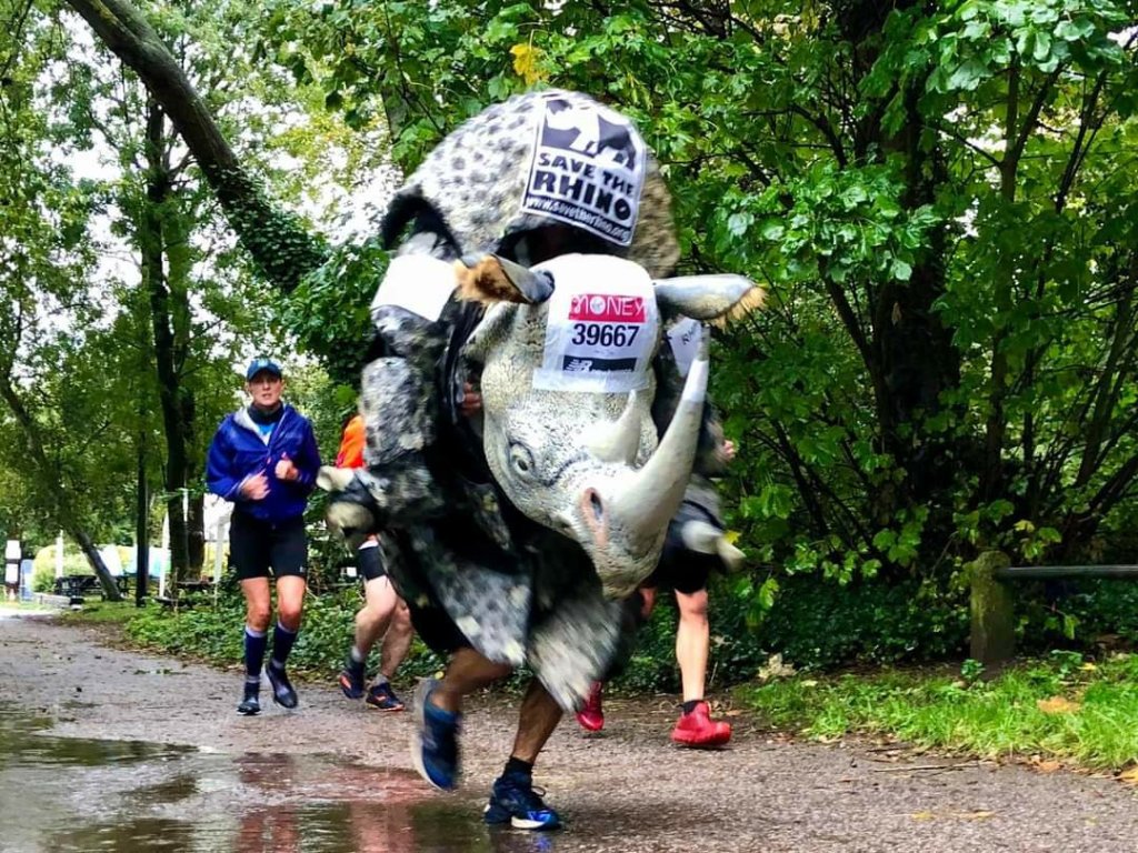 We ran up and down the Thames path 8 times, for the marathon distance. It was good to see lots of other runners, and also many with their Virtual London Marathon bibs running their own race. What was great to see was a Rhino, because after all, its not the London Marathon without a Rhino.