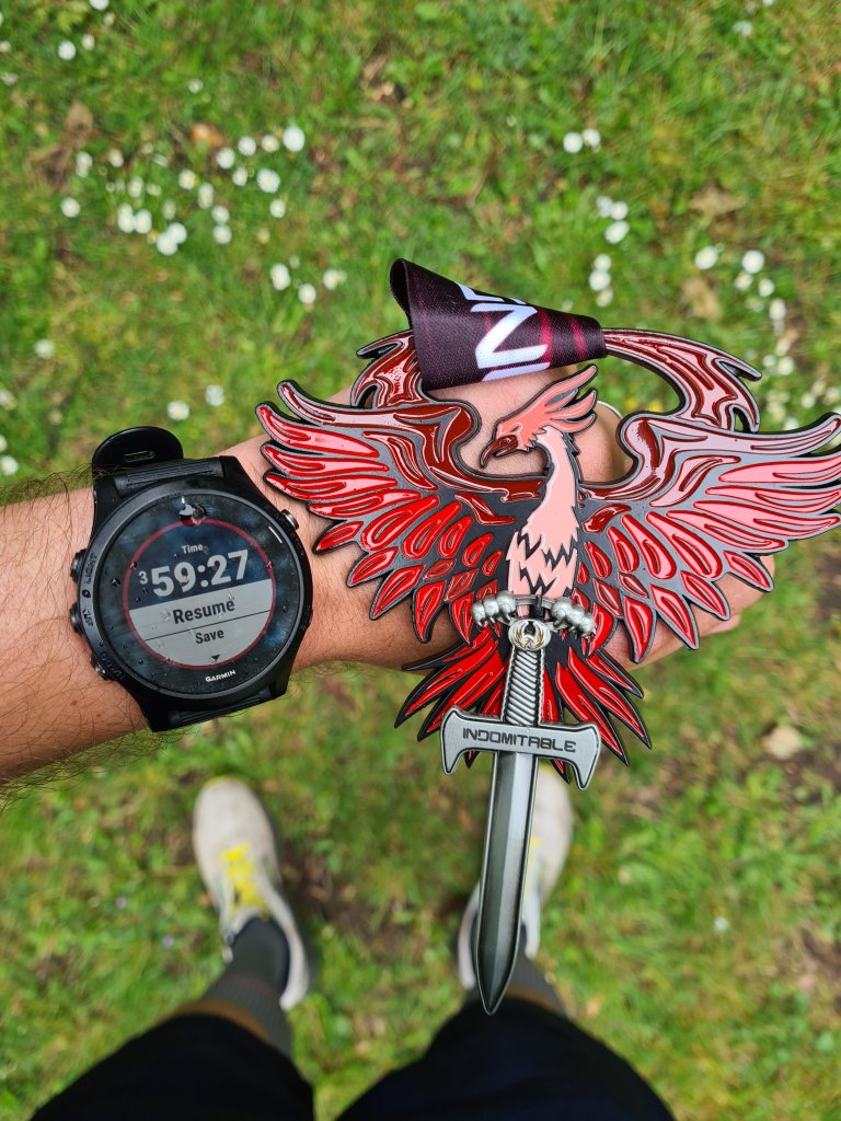 Today I managed to finish in 3:59:27. This is the 3rd time I’ve stopped my watch on this time over the 8 days, but for the first time I think Rik has recorded my official time as the same as my watch, 3:59:27. That’s 8 days in a row, with 5 seconds separating my fastest and slowest times.