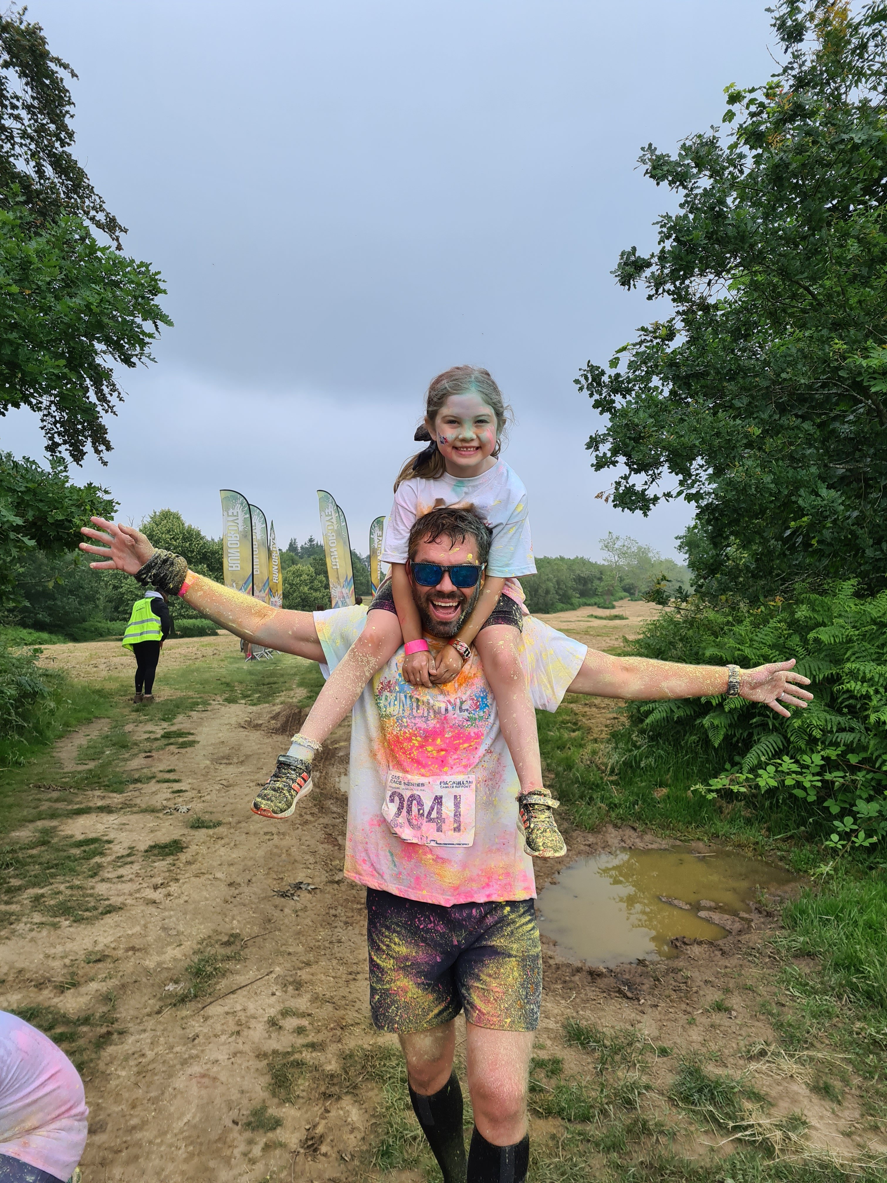 I had originally aimed for a sub 45 min 10k, but with the difficulty of the course I was more than happy with 45:50. Honestly I could have pushed and ran sub 45, but when I finished I had 15 minutes before the start of the 5k Colour Run. So I was sensible, finished, ran to car to change top, and then join family ready to get covered in colour.