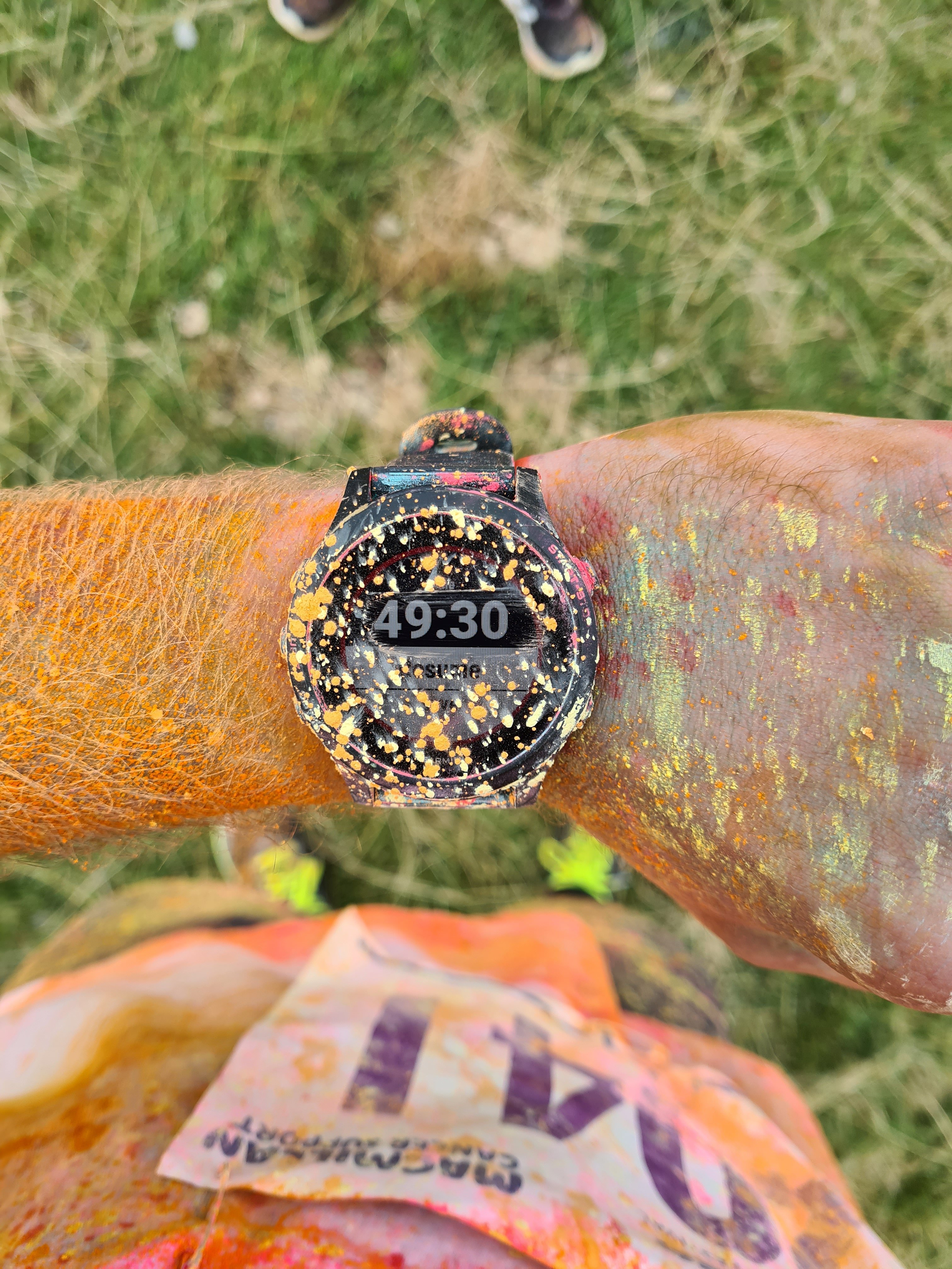 There was paint at every km from this point, and arguably the 3k mark was the best… we came out pink.