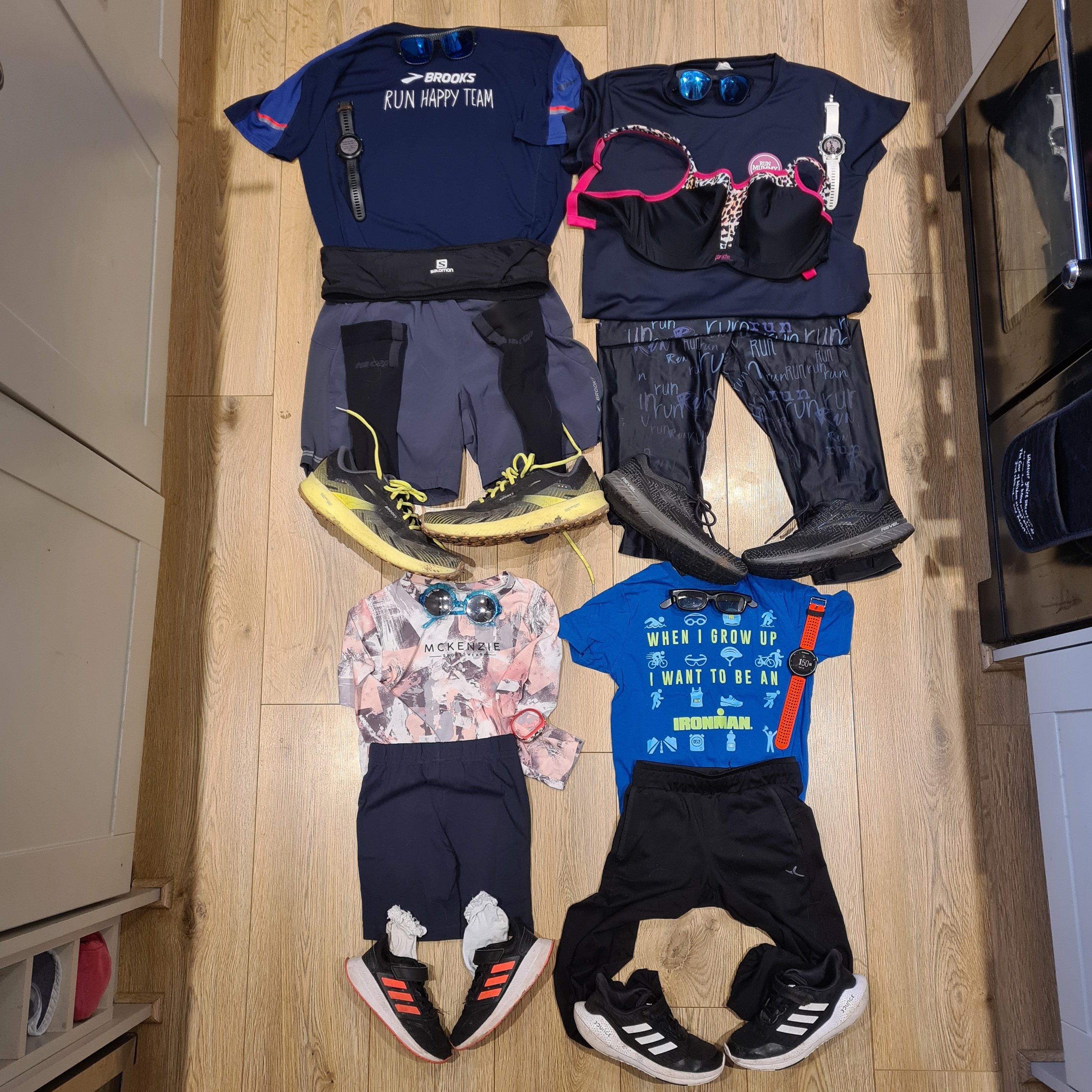 We started with a family #flatlay. As I always get my kit together the night before race day, I got my family to join me with preparations, and get all their kit together. My family will often join me at a race to do a shorter distance, but it’s not often we all get to run together.