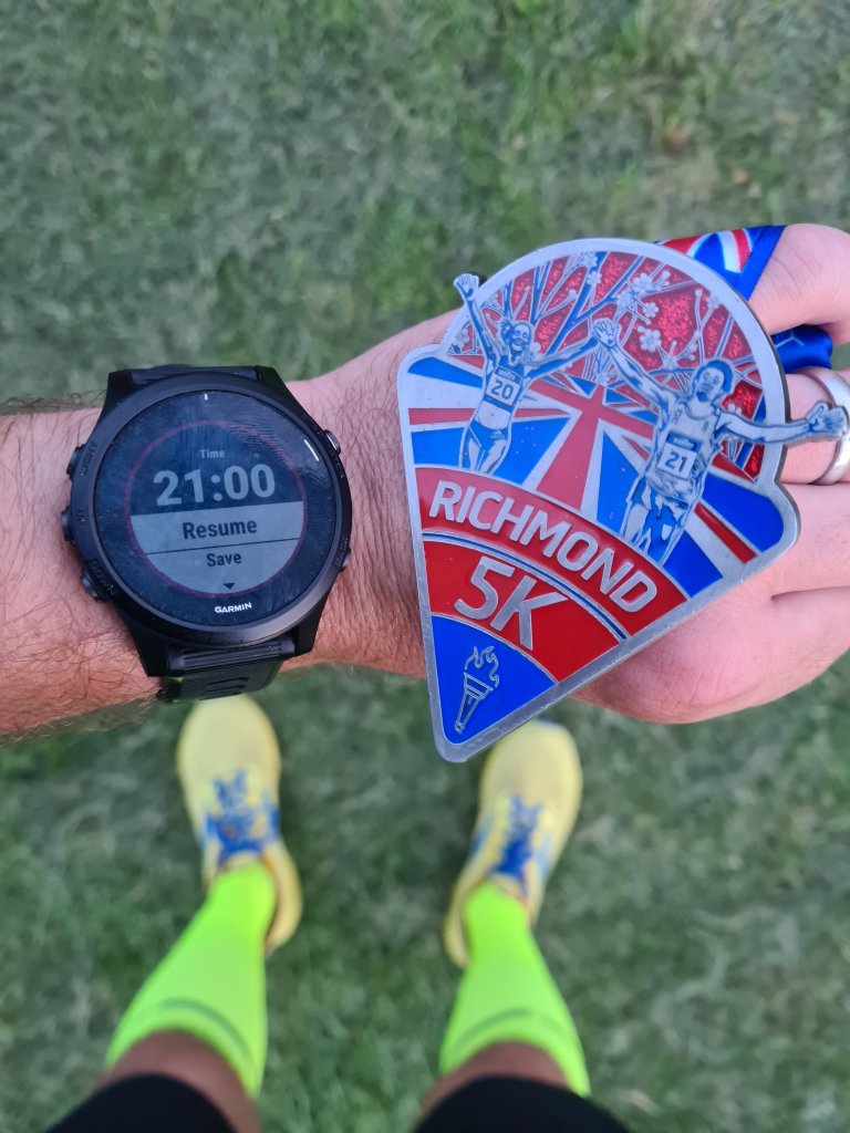The course isn’t exciting and the majority of it is on grass. It is two laps, which keeps everything close, and so you can see family numerous times throughout the race. On the second lap I was overtaken by someone and gradually he pulled away. I eased off a little, but at 4k I decided to pick up the pace. I overtook 3 runners and had that runner in my sight. It is always great when you have someone to aim for, and at the final turn I overtook him and put on the gas to full throttle. Coming in bang on 21 minutes according to my watch.