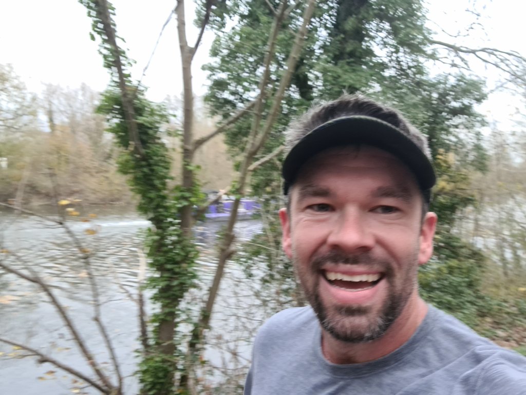 There were lots of familiar faces out on the tow path. 8 laps, up and down, with a tuck shop at the aid station / turn point. I had a cup of lemon squash that was topped up for me every time I did a lap, and I took a large fizzy cola bottle each lap. David Heal was running his 100th Marathon today and had an awesome cake waiting for us at the finish. Rhinoboy Chris had his Rhino costume on crashed along the Thames Path, and there were lots of smiles as I passed people again and again.