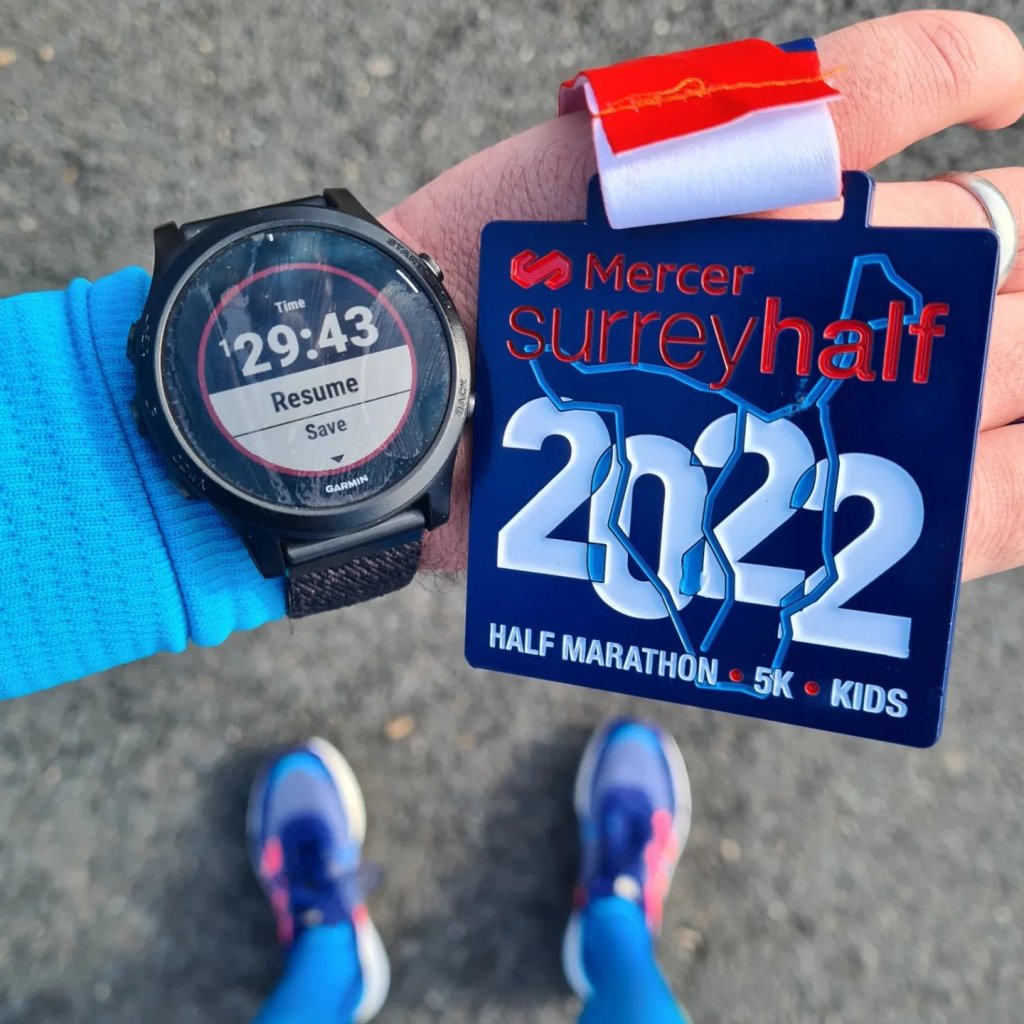 On 6th March 2022 I decided to enter the Surrey Half Marathon, last minute. I had wanted to go and run something a little faster, keeping in mind I do not feel at my best, but still want to achieve a sub 3 marathon. I noticed there was also a kids fun run (2km) race, and I knew that my boy would be excited by it. I signed up my whole family (wife, son and daughter) for the Fun race, which started whilst the half marathon was underway. My boy was very clear that he would not be waiting and being slowed down, so I was pleased about the safety and security measures in place for child proteciton. This meant he could run off by himself, and wait for my wife and daughter to finish and come to pick him up.