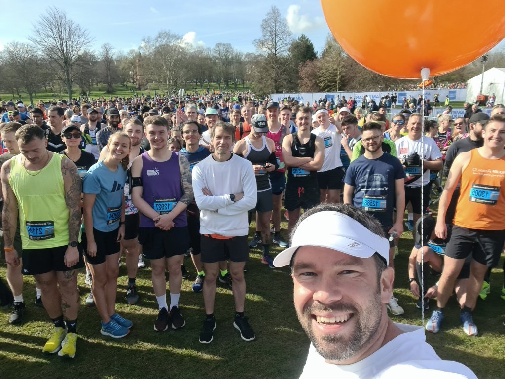 When we arrived by the start there was a huge group from blue who were expecting a 4 hour pacer, and some said they were told we would be in there. We quickly agreed I would start in the blue wave, with Pete and Daniel starting in yellow. I think this was ideal to support runners in both groups. It would be ideal to have an extra pacer so there could be 2 in both waves, just in case.