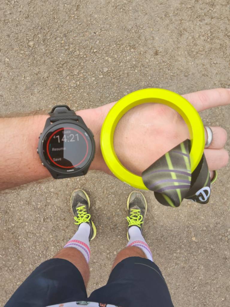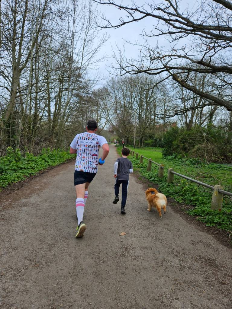 Despite feeling more tired than any day this week and having a headache, I started running consistently. It took me a couple of miles to get to a pace I was happy with, but then I maintained it for longer than I expected. I had planned for my boy to come and run the last lap with me whilst my wife walked the dog, and at half the way, I had to phone to let them know they should come earlier. I had given them timings based on a 4:30 finish, but I was on for a 4:10 and not showing any real signs of slowing down.
