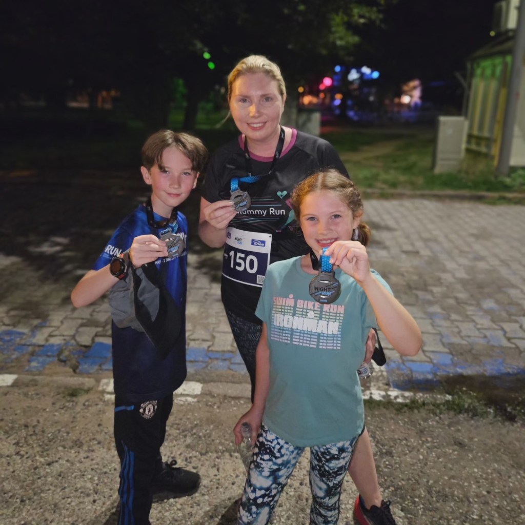 It was such a beautiful race, running at night. It was also good to test out my foot and get used to the run route. This was the first time I ran since breaking my toe 11 days earlier. It was uncomfortable but much better than it felt when I was running around on the beach to see my kids do the Aquathlon.