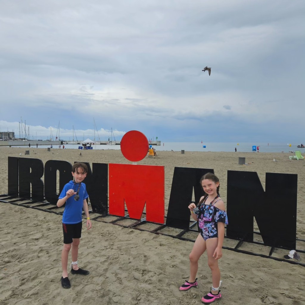 Saturday was a beautiful day for triathlon. It was a little overcast, but mostly dry, and the wind was low. There were different sprint events happening, and it was good to see the first swim and exit. We spent a lot of time on the beach and arcade. It was nice chilling on the beach with a beer whilst the kids played.