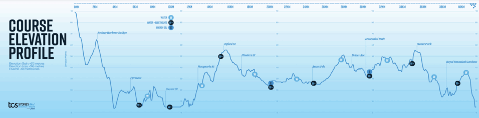 Then I wanted to go and walk around the finish line. The course profile for Sydney looks very challenging, but clearly this is just the scale used. I was told the hardest parts were at 16k and 40k, so I wanted to go and walk the final 4k so I knew what to expect and avoid any surprises. I wanted to be familiar with this section to better prepare the runners.