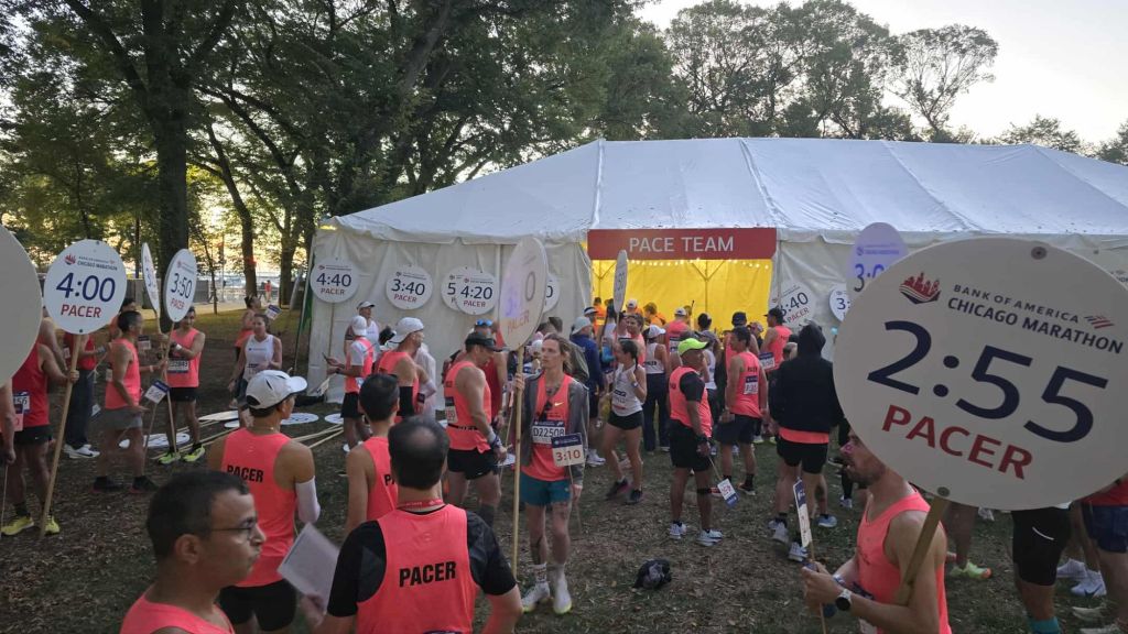 I set my alarm nice and early to leave my hotel at 05:00 for our pacer meet. I always like to arrive early and ensure everything is prepared. At Chicago we have a tent for the pacers with our own toilets. The little luxury makes a big difference and helps us to get ready.