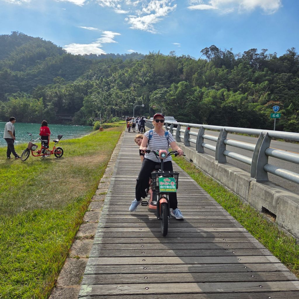 So shortly after arriving we dropped our bags in the hotel lobby, and went straight to hire a bike. It really is easy to hire a bike, as there are so many bike shops. We decided to get an electric bike with a double seat, which was definitely the best option. It cost 500 TWD (£12.50) for each bike for a couple of hours, which was plenty of time, and it wasn’t a strict return time.